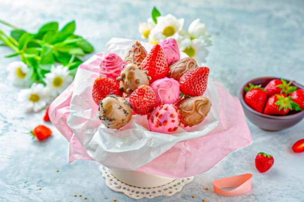История клубники в шоколаде началась в 1960-х годах в Чикаго, когда владелец небольшой кондитерской просто окунул ягоду в шоколадную глазурь. А идея собирать их в букеты пришла к нам из Японии, где искусство составления съедобных композиций (морикаге) достигло совершенства. Сегодня фруктовые букеты — это тренд, популярный во всем мире.