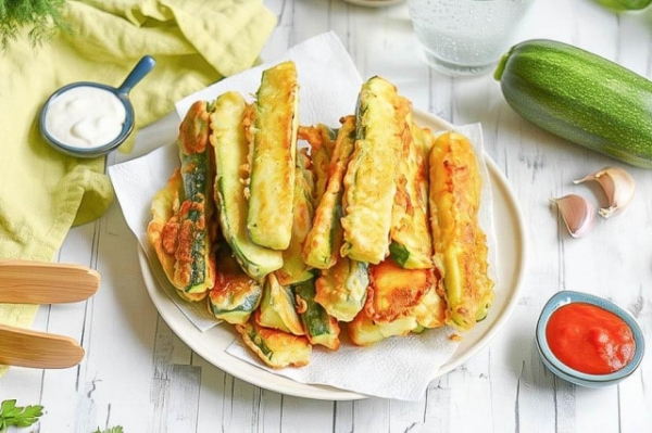Кто оценит рецептРецепт подойдёт любителям лёгких закусок, дачникам и тем, кто ищет быстрые летние блюда. Идеально для семейного обеда, пикника или праздничного стола. Замены ингредиентовСметану в соусе замените на греческий йогурт или кефир. Майонез — на натуральный йогурт с горчицей. Молоко в кляре можно заменить на кефир или воду. Советы по выбору продуктовЦукини выбирайте молодые, с блестящей кожицей — они нежнее и быстрее жарятся. Чеснок берите свежий, без ростков — он ароматнее. Зелень должна быть ярко-зелёной и упругой.
